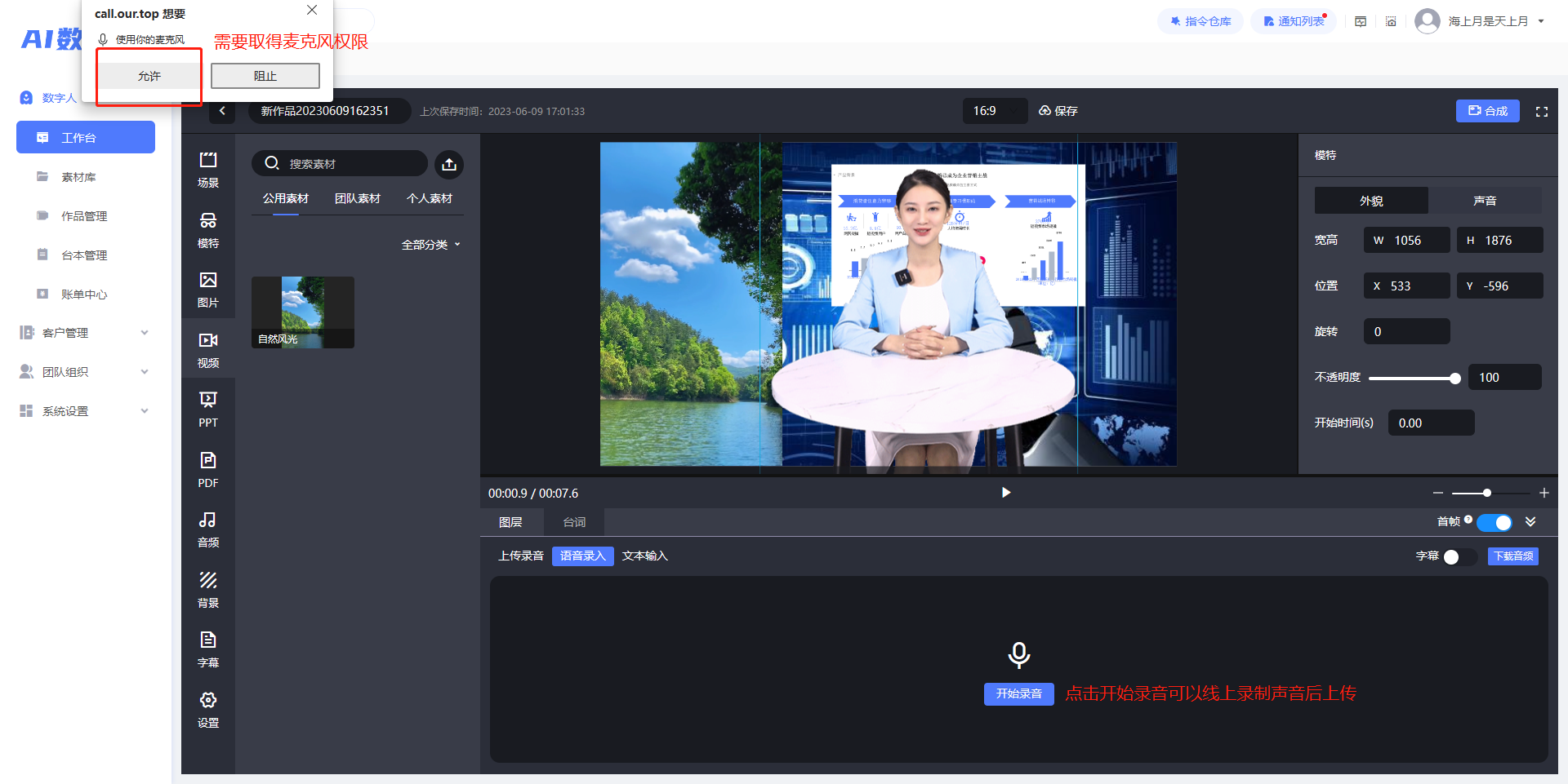 调整方向之后,对着主角进行朗诵录制即可。